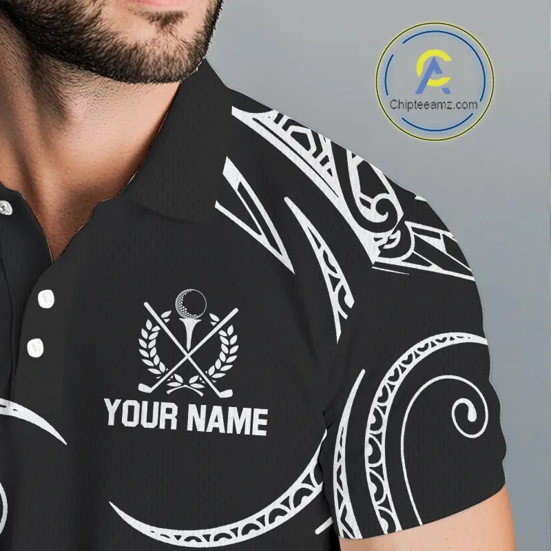 Black and White Tribal Pattern Golf Ball Mens Golf Polo Shirts custom unique mens golf apparel NQS9821