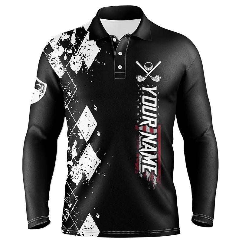 Black and white argyle plaid golf shirt mens golf clubs custom name mens polo golf apparel NQS5481