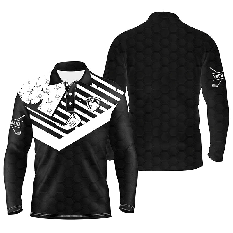 Black white Mens golf polo shirt custom American flag golf clubs patriotic golf polo shirts for men NQS5329