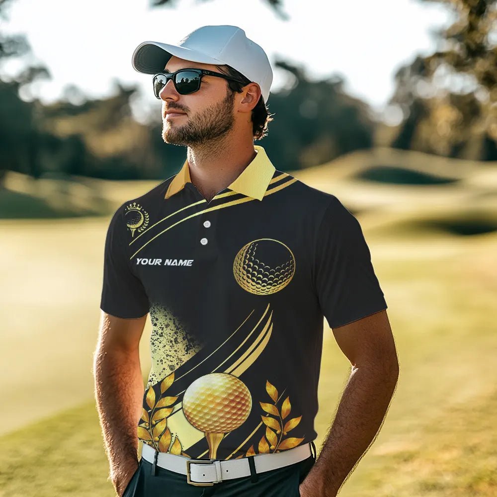 Black and Gold Mens Golf polo shirts custom golf apparel team jerseys, personalized golf gifts NQS9594