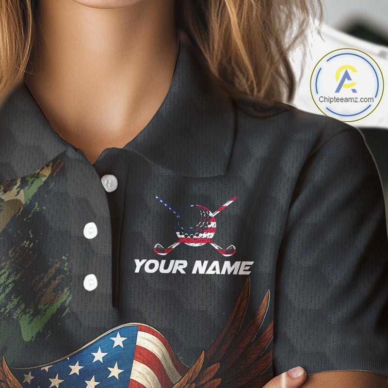 Black and Green Camo American Flag Eagle Golf Polo Shirts For Women Custom Patriotic Team Golf Jersey NQS10953