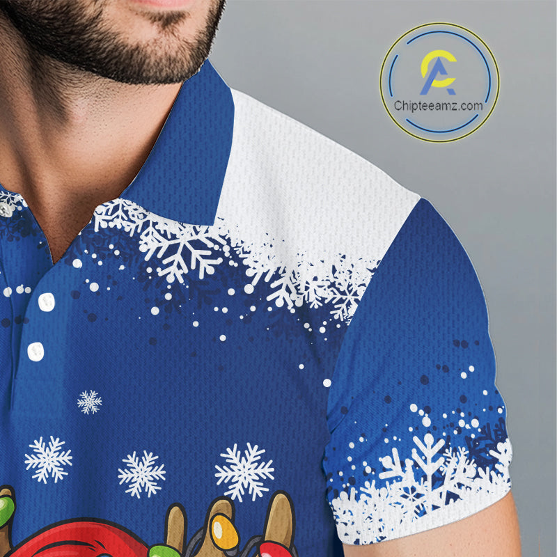 Blue and White Christmas Golf Polo shirts For men Custom mens golf tops, Xmas golf gifts for men NQS11027