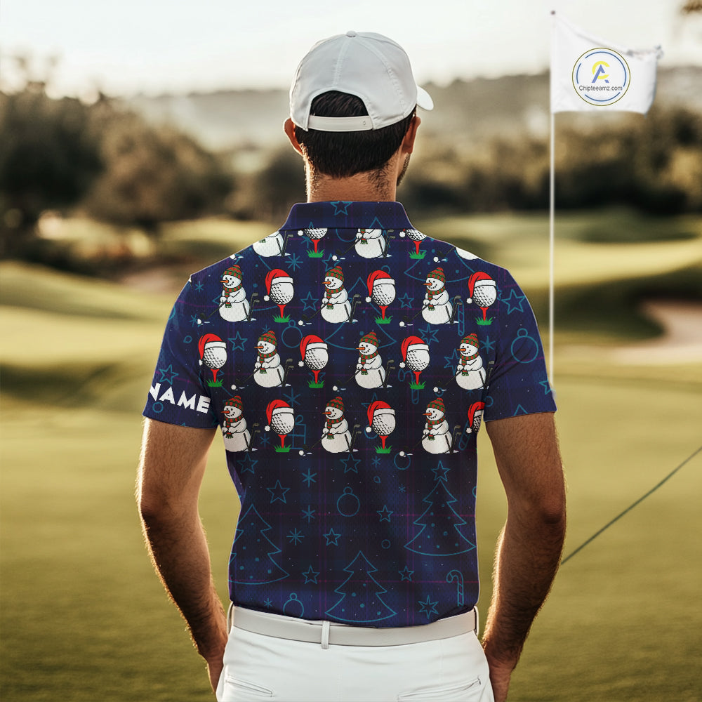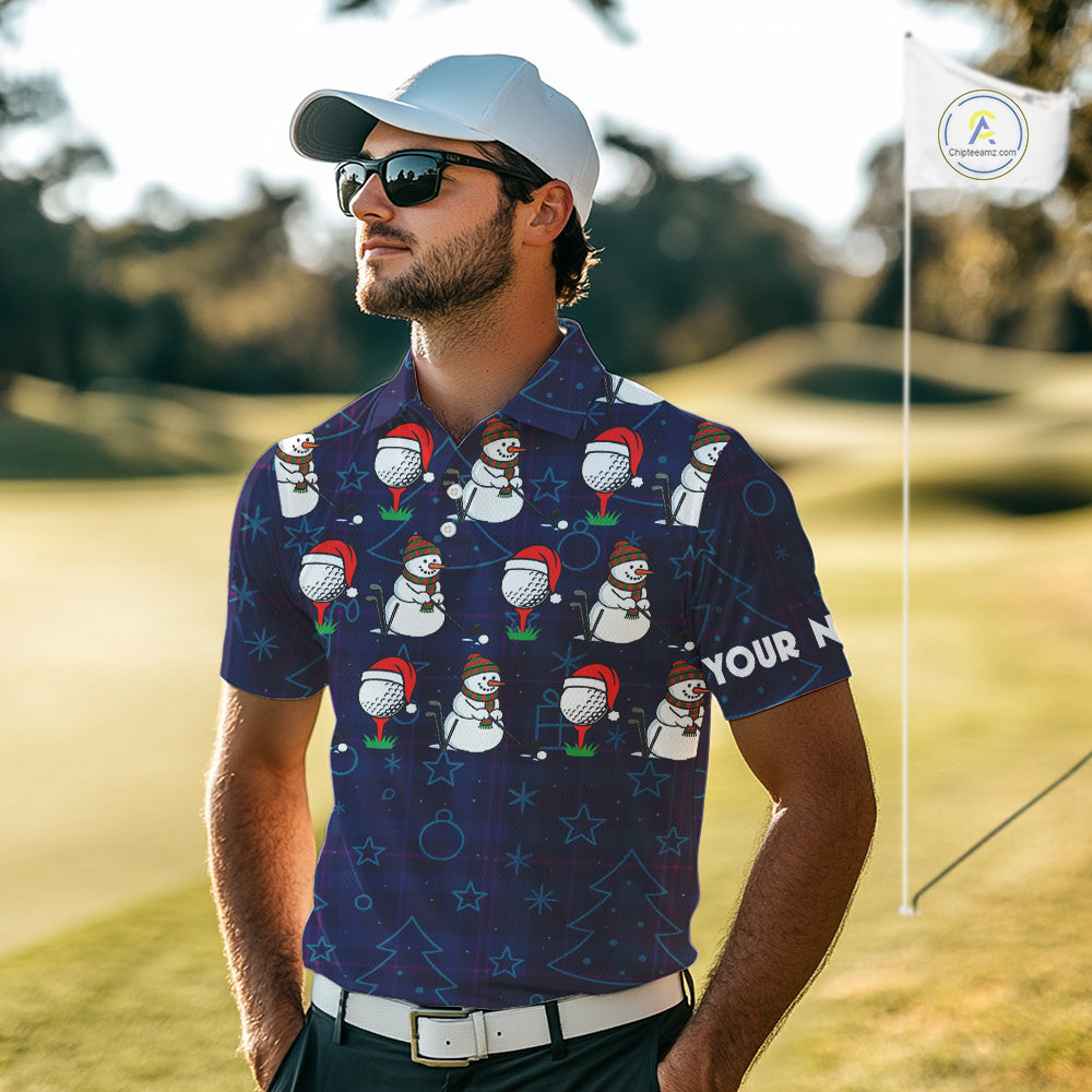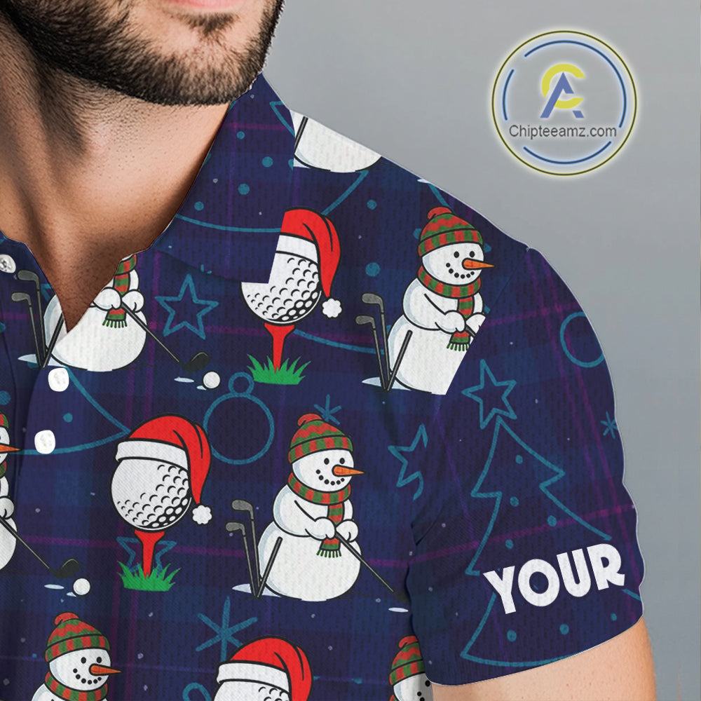 Blue Christmas Plaid pattern snowman Golf Polo Shirts For Men custom Christmas mens golf attire NQS10902