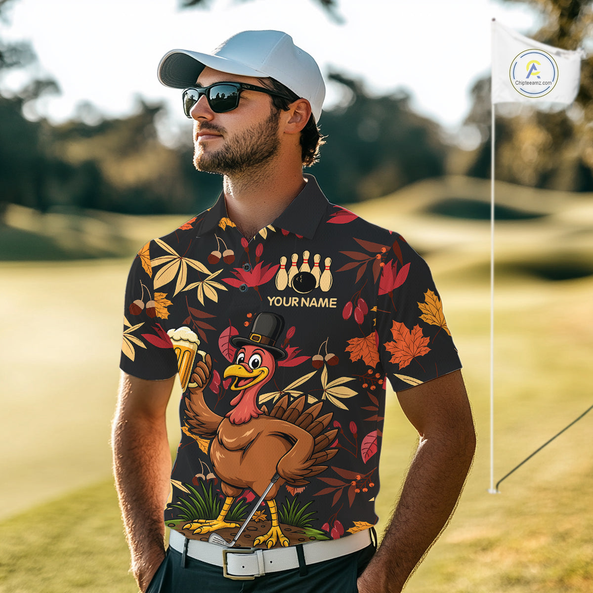Funny Turkey Golf Beer Thanksgiving golf shirt Custom Funny golf shirts for men, mens golf clothes NQS10964