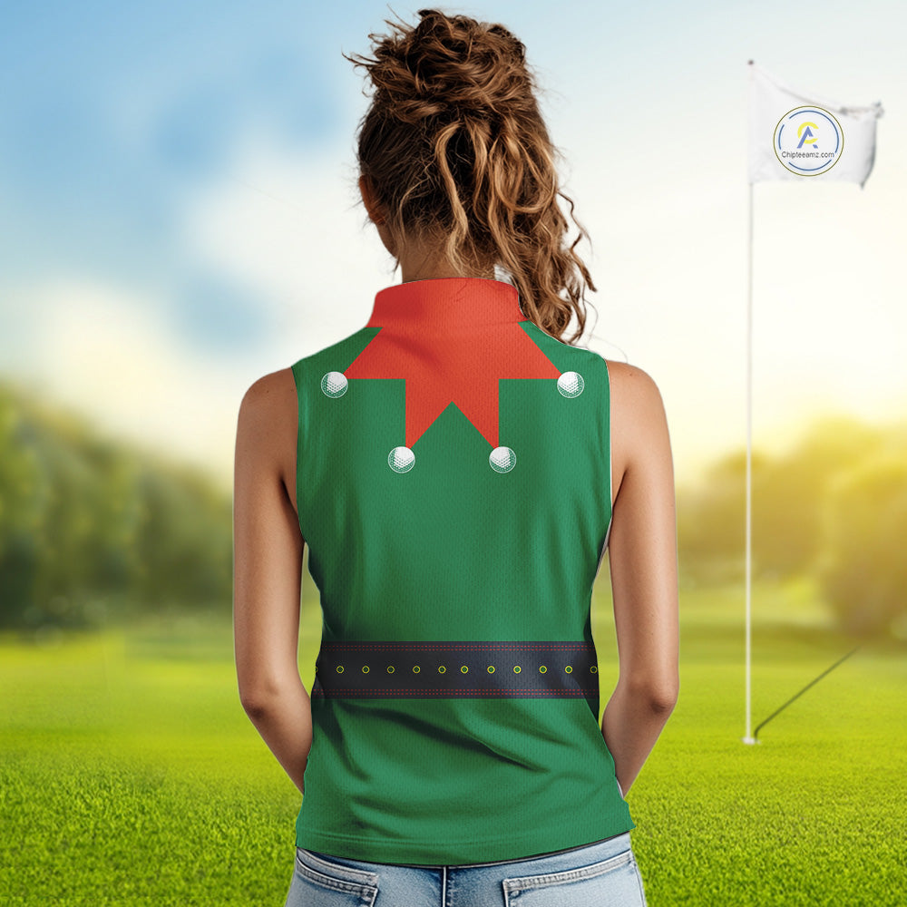 Green and Red Funny Elf Christmas Sleeveless Golf Polo shirt Custom ladies Christmas golf tops NQS11019