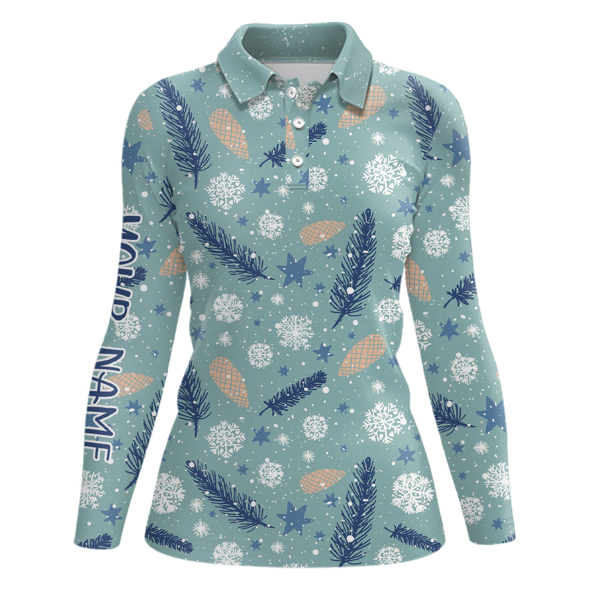 Blue Christmas Snowflakes Womens Golf Polo Shirt Xmas Women Golf Shirt Personalized Golf Tops LDT1021