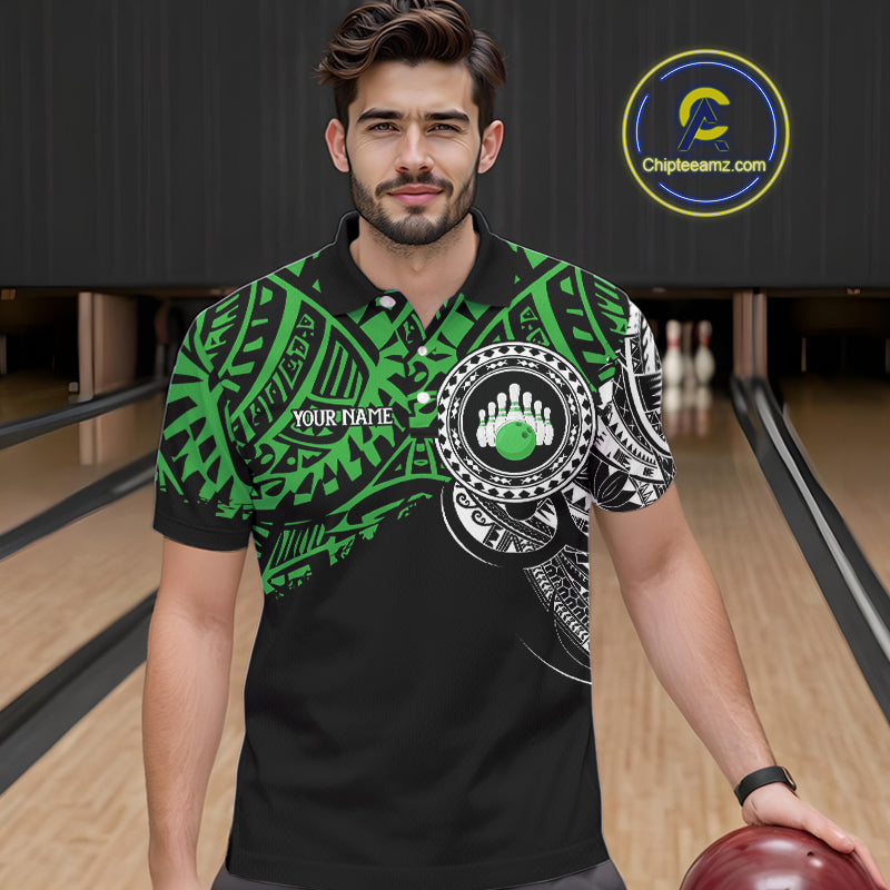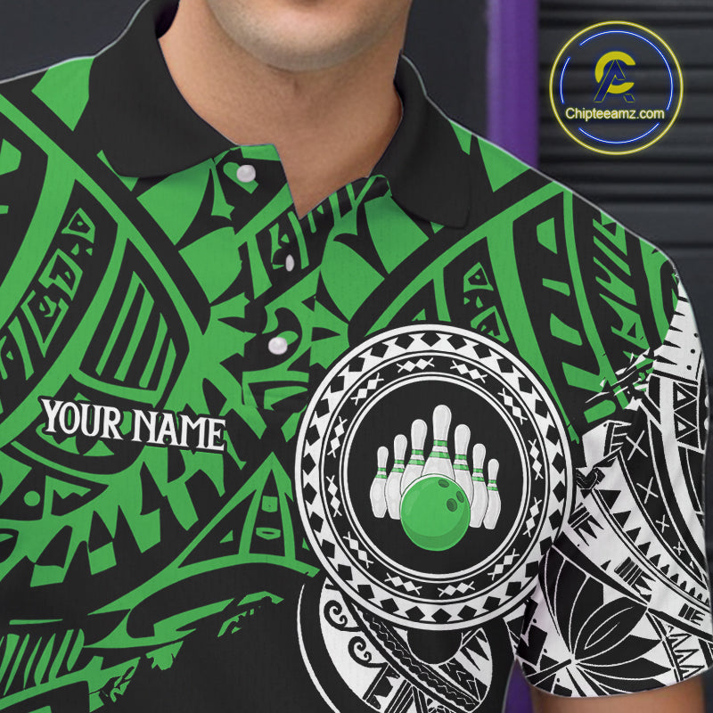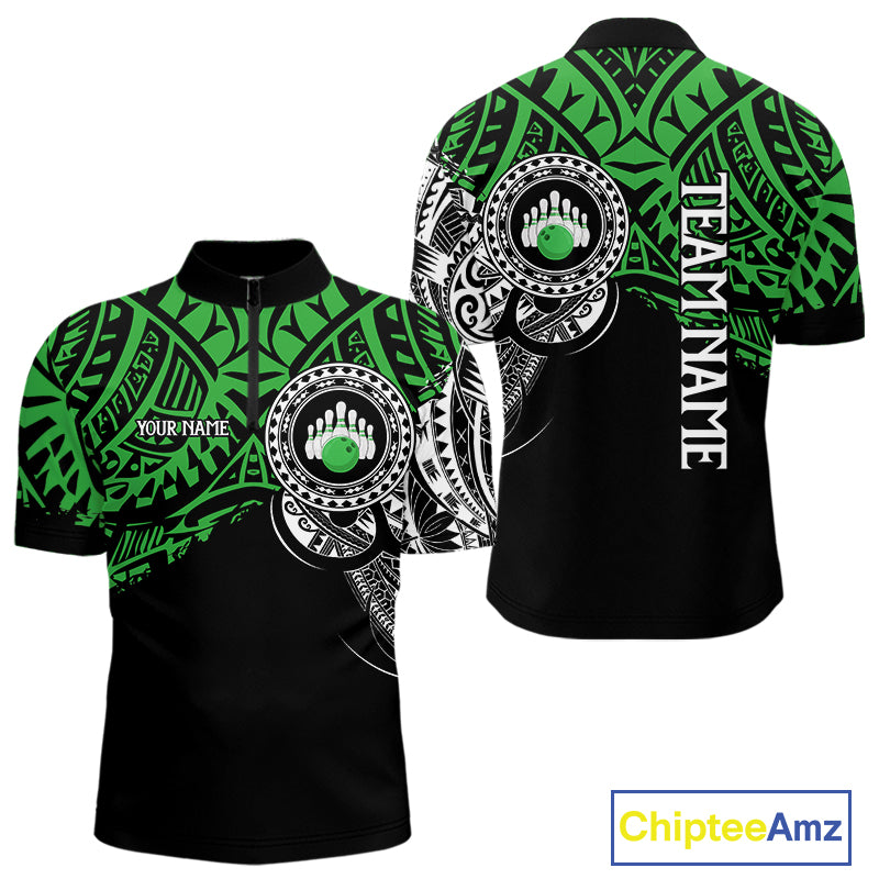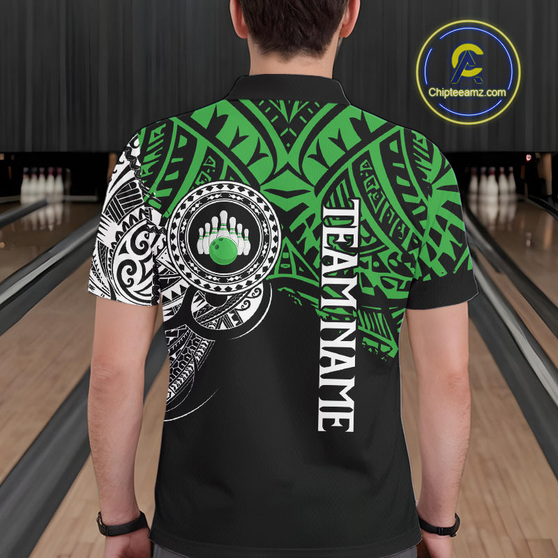 Personalized Black and Green Tribal pattern Mens Bowling Shirts Custom Team Bowling outfit for men NQS10763