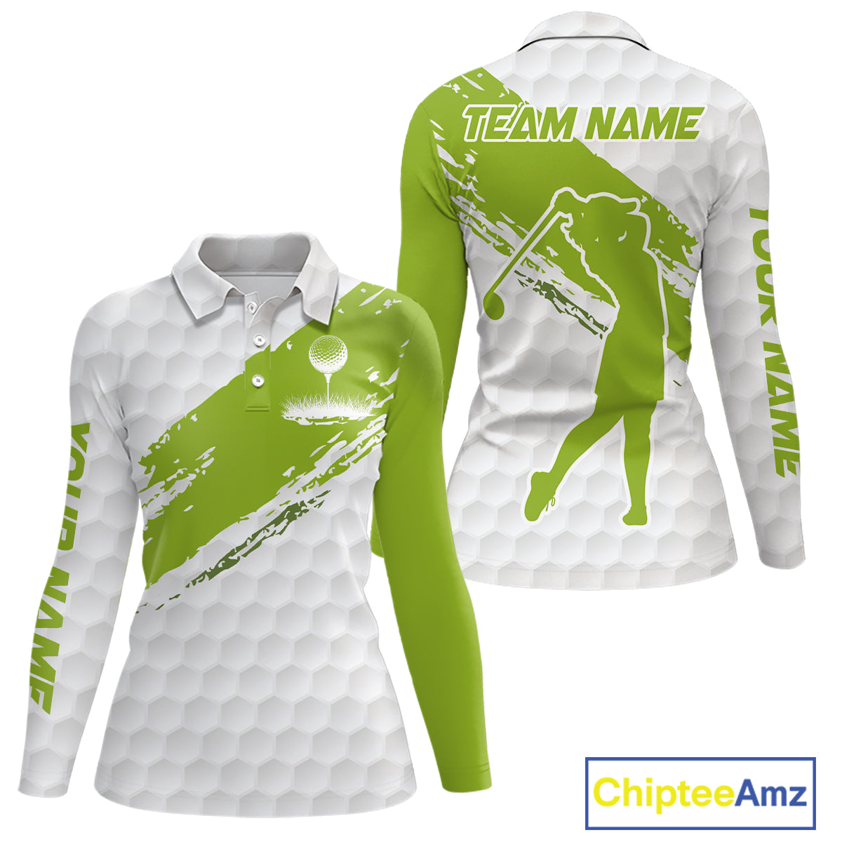 Green and White golf ball pattern Women golf polo shirts custom team womens golf clothes NQS9974