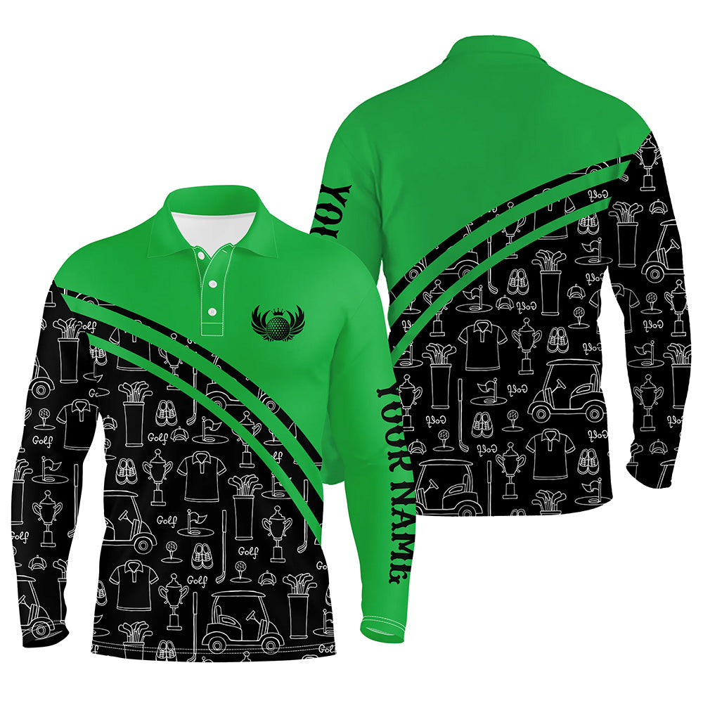 Mens golf polos shirts custom black pattern short long sleeve golf shirts, golf gift for him | Green NQS5242
