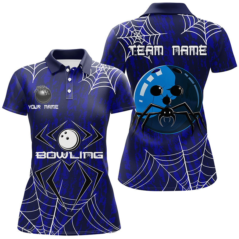 Blue Camo Bowling Polo, 1/4 Quarter zip shirts Custom Spider web Halloween Women Team Bowling jerseys NQS8158