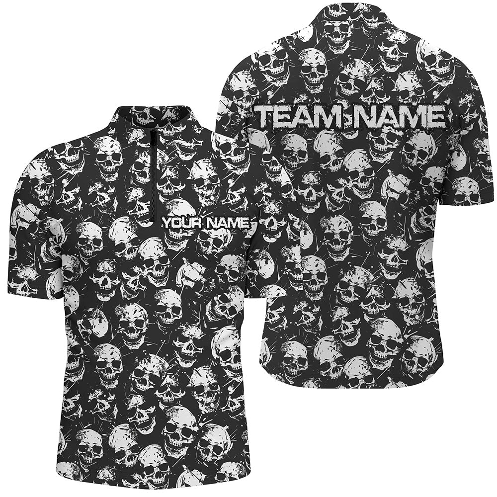 Custom Black And White Skull Halloween Bowling Shirts For Men, Halloween Outfits For Bowlers IPHW7162