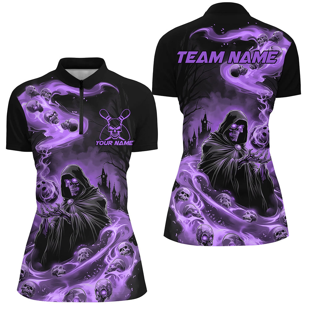 Black And Purple Grim Reaper Custom Halloween Bowling Team Shirts For Men, Bowling Gifts IPHW7613