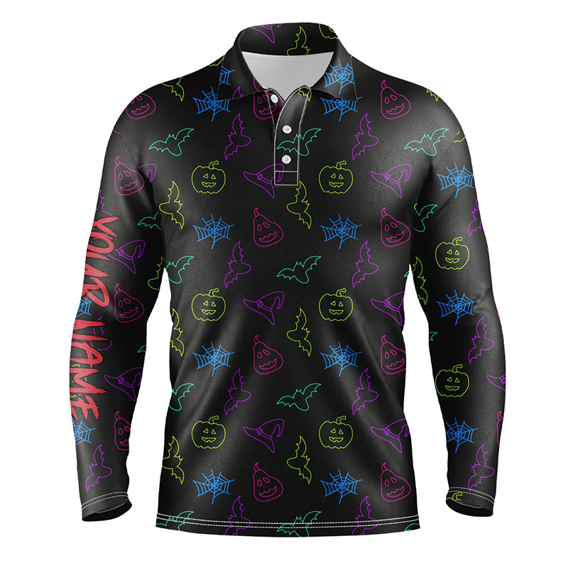 Colorful neon Halloween pattern black Mens Golf Polo Shirts Custom golf attire for men golfer gifts NQS8557