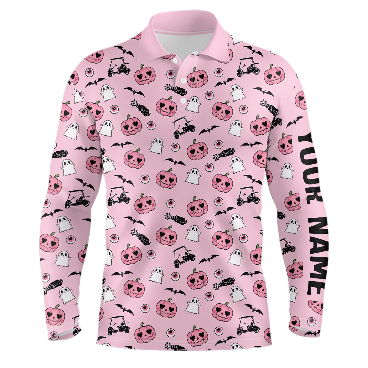 Pink Halloween Mens Golf Polo Shirts Custom Golf Shirts For Men Cute Halloween Golf Gifts LDT0548