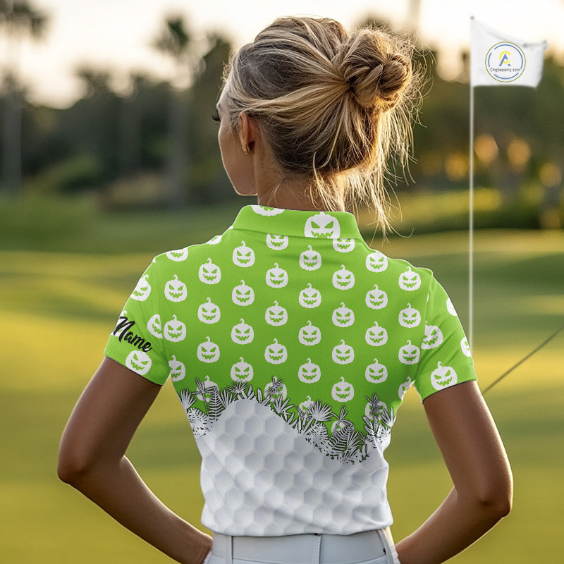 Personalized funny green pumpkin Halloween pattern Women golf polo shirts best ladies golf wears NQS10316
