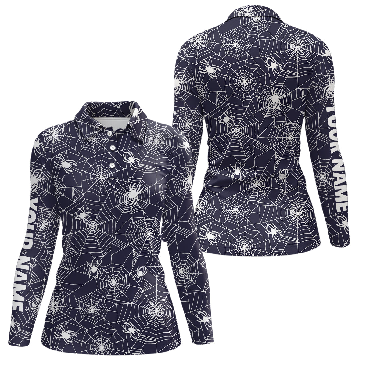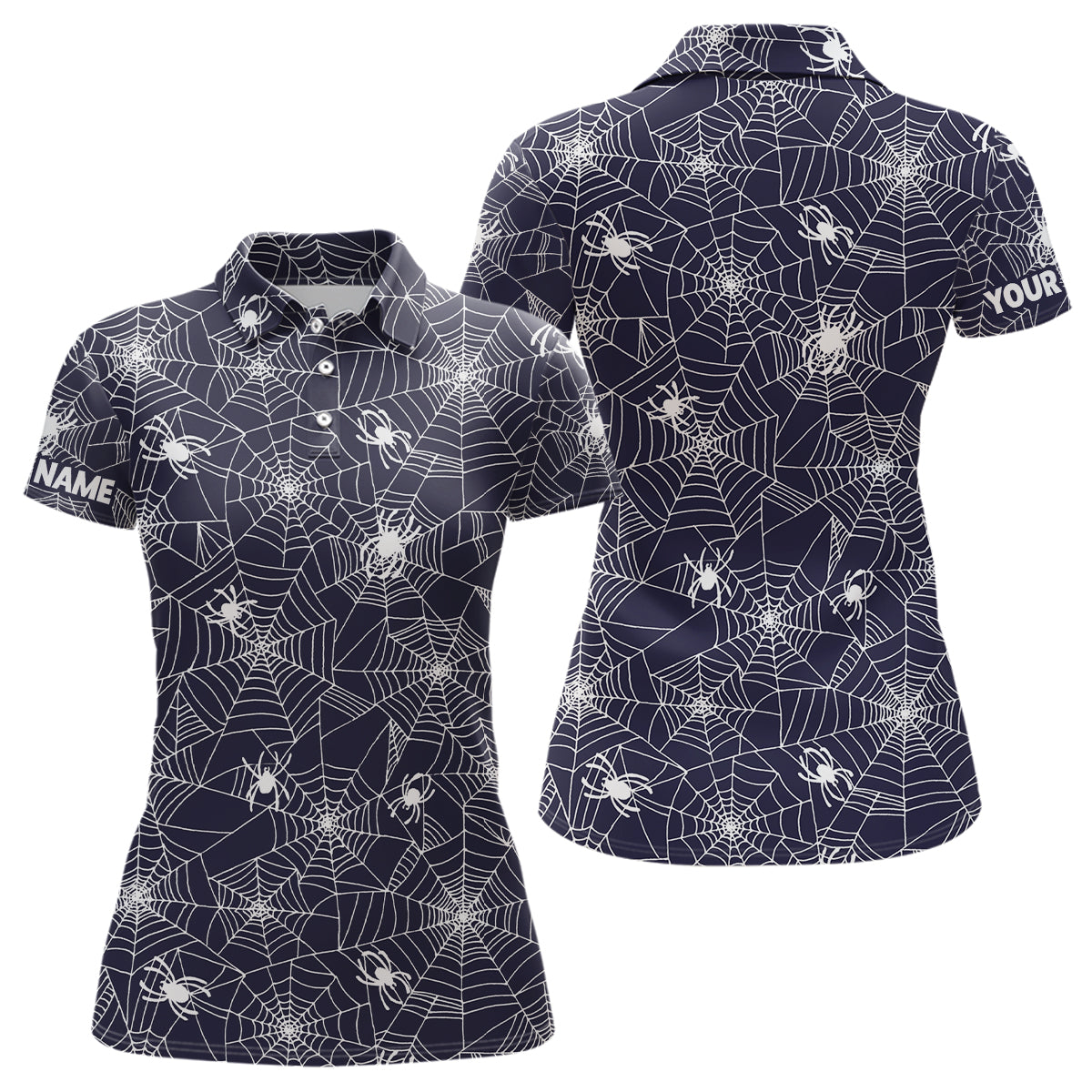 Spooky White Spiders On Cobweb Navy Halloween Golf Polo Shirts Custom Golf Gifts For Women LDT0376