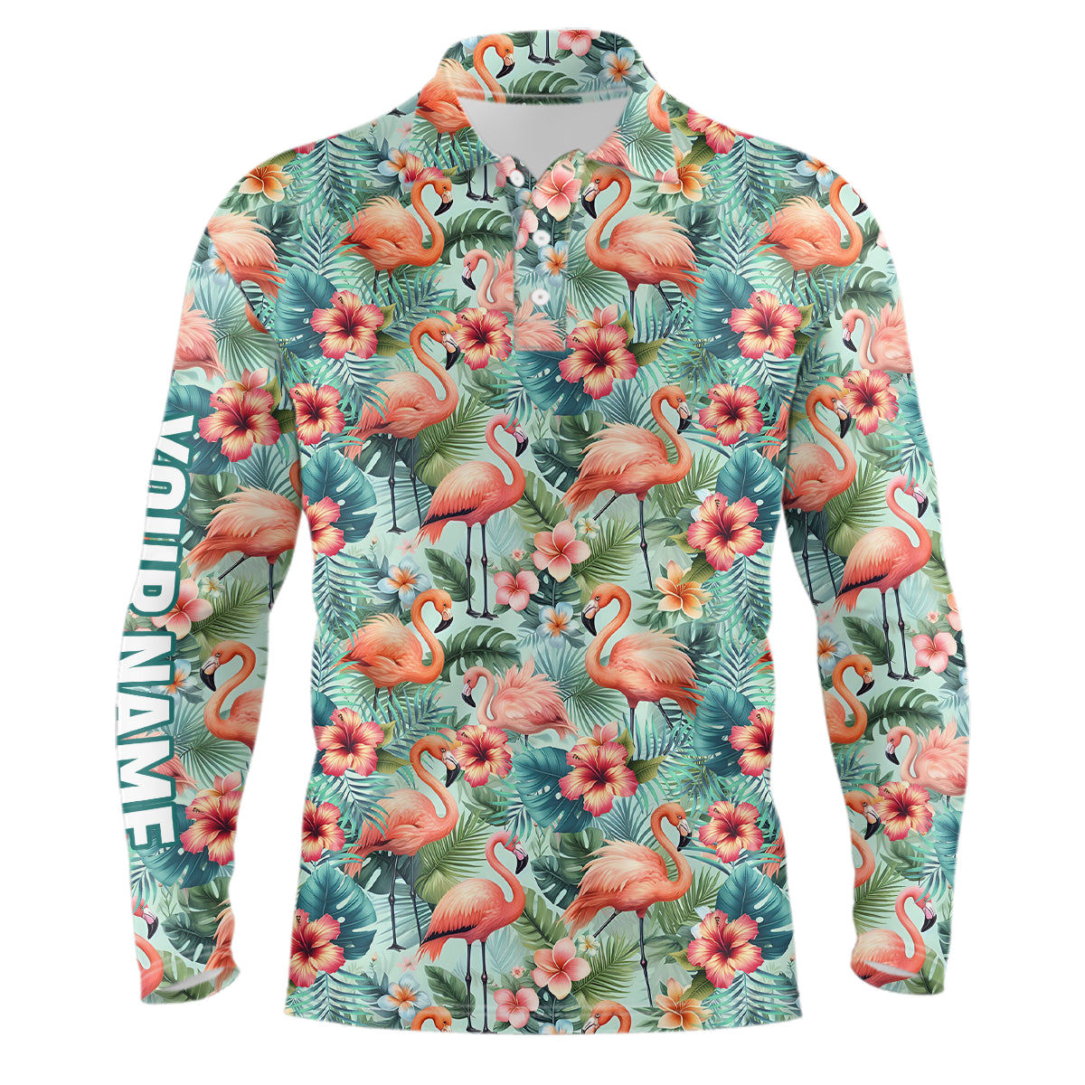Pink Flamingo Tropical Mens Golf Polo Shirts Custom Name Golf Shirts For Men Golf Gifts LDT1308