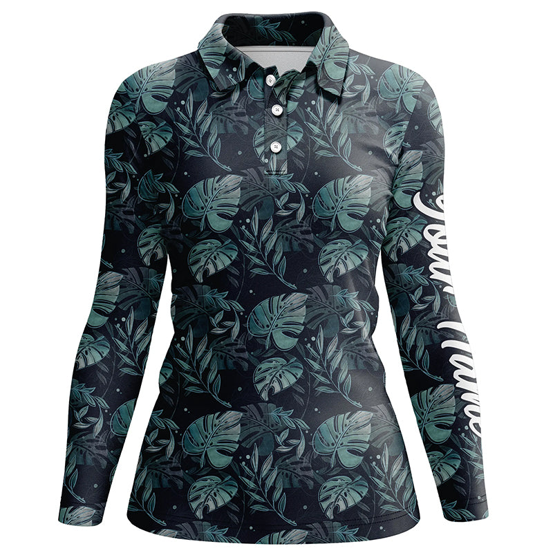 Womens golf polo shirts with monstera leaves tropical custom name golf shirt, golfing gifts NQS5921