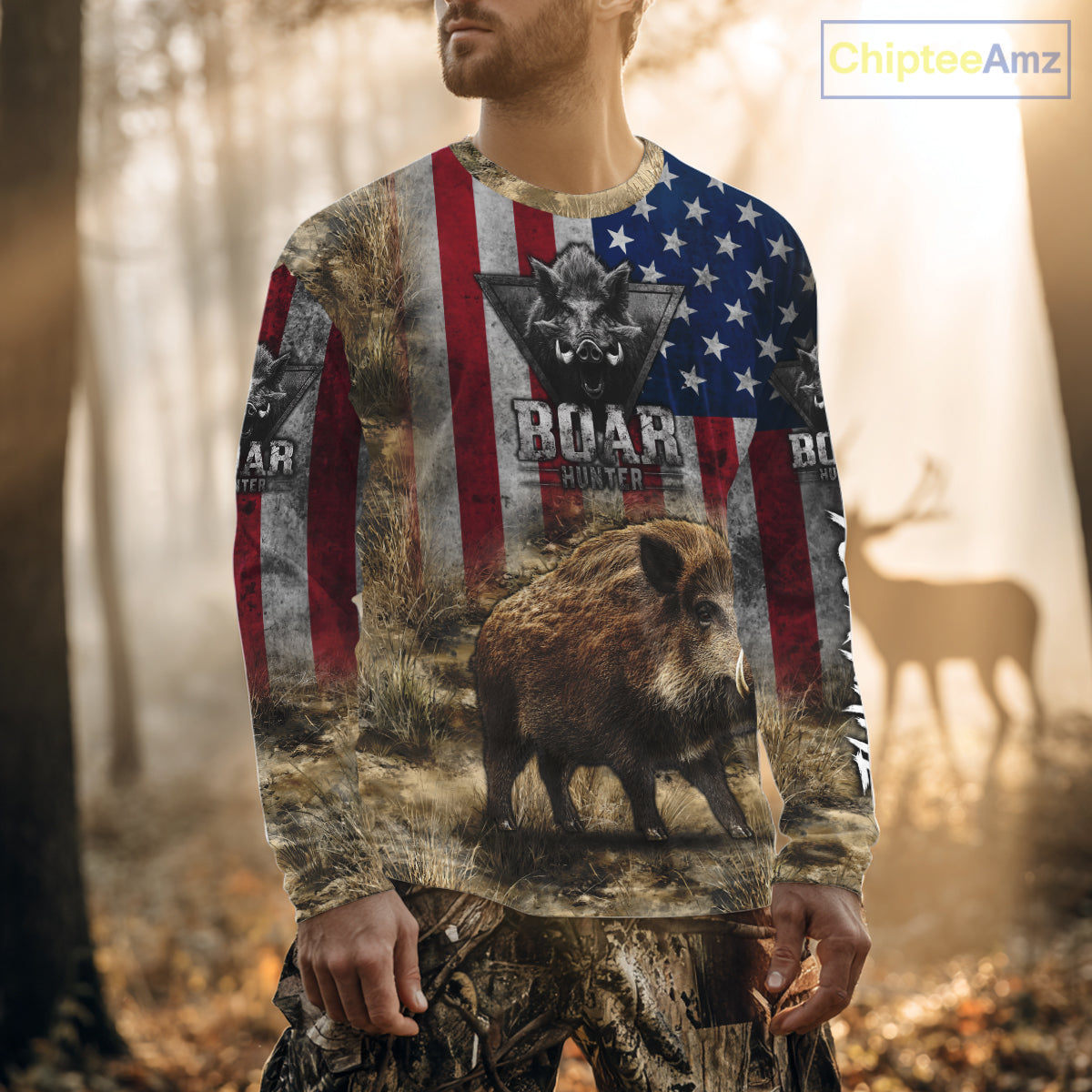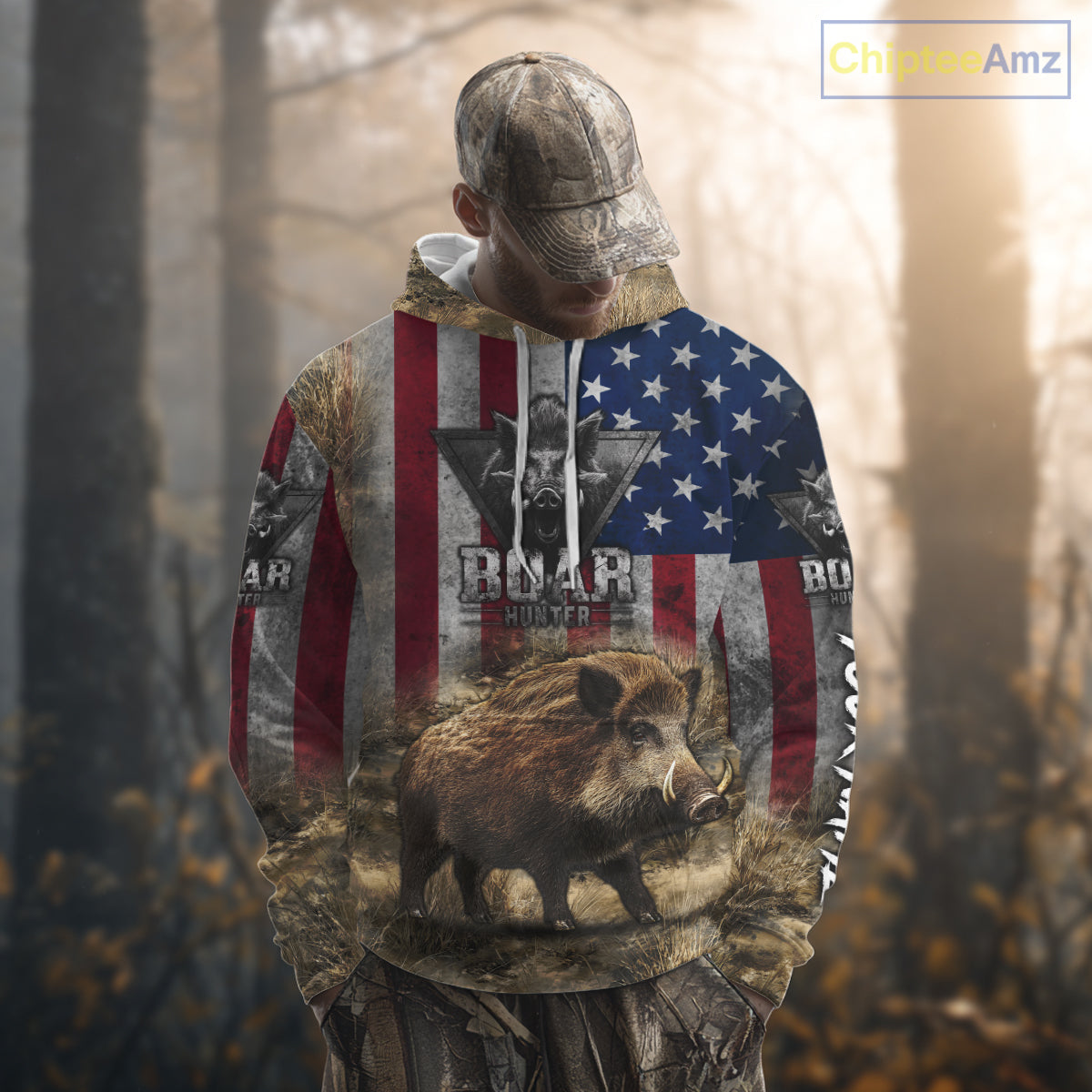 American Flag Wild Boar Camo Custom Name 3D Shirts, Boar Hunting Clothes for Hunters NBT132