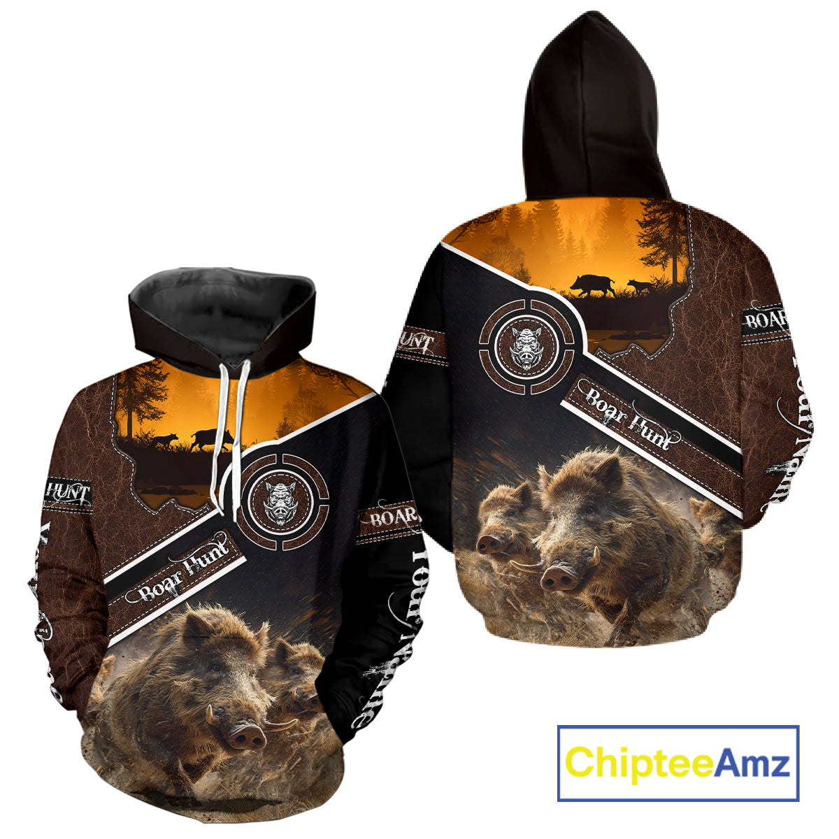 Wild Boar Hunting Leather Pattern Custom Name 3D All Over Printed Shirts Personalized Boar Shirt NBT143