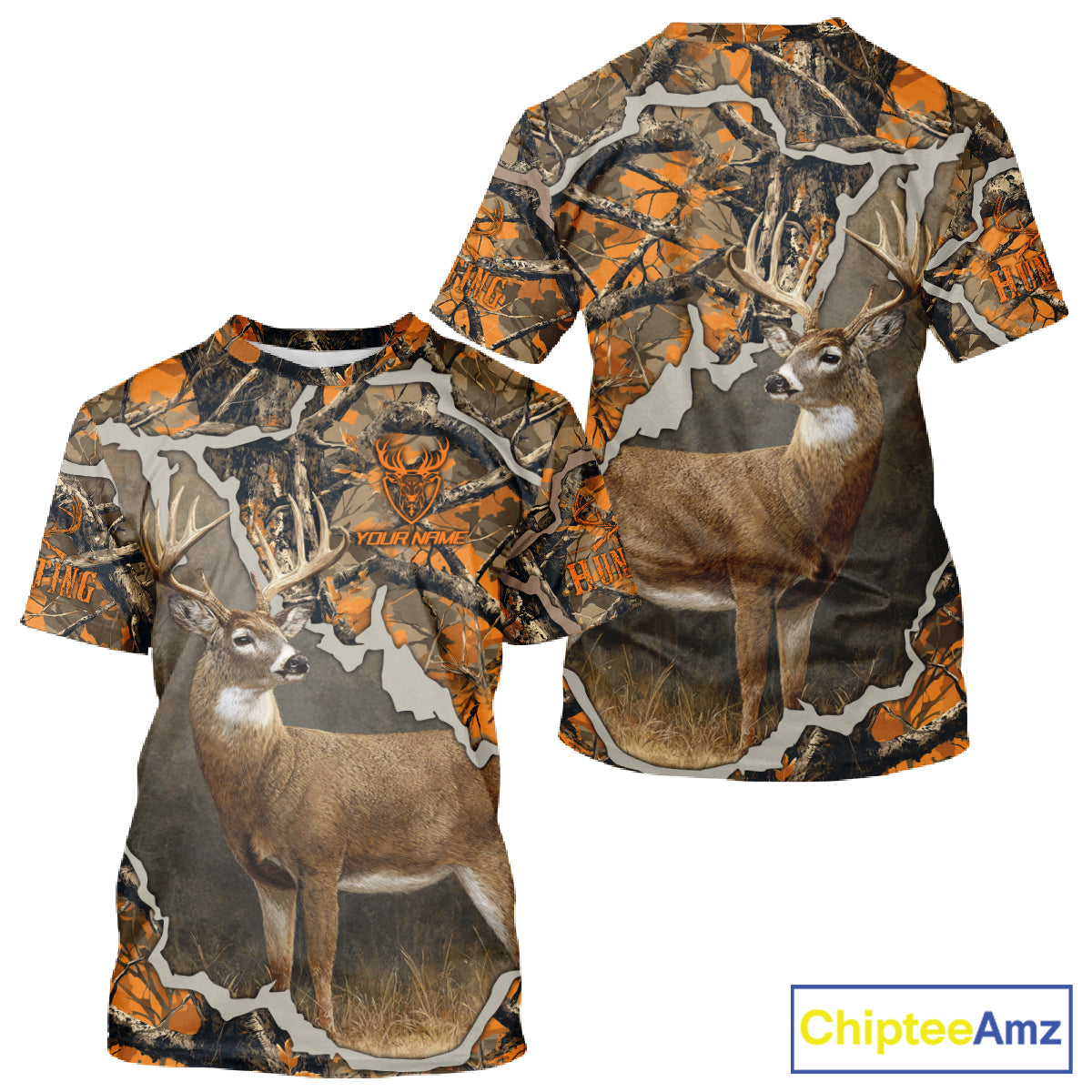 Whitetail Deer Hunting Custom Name Orange Camo Shirt, Deer Hunting Apparel, Camouflage Deer Shirts NBT339
