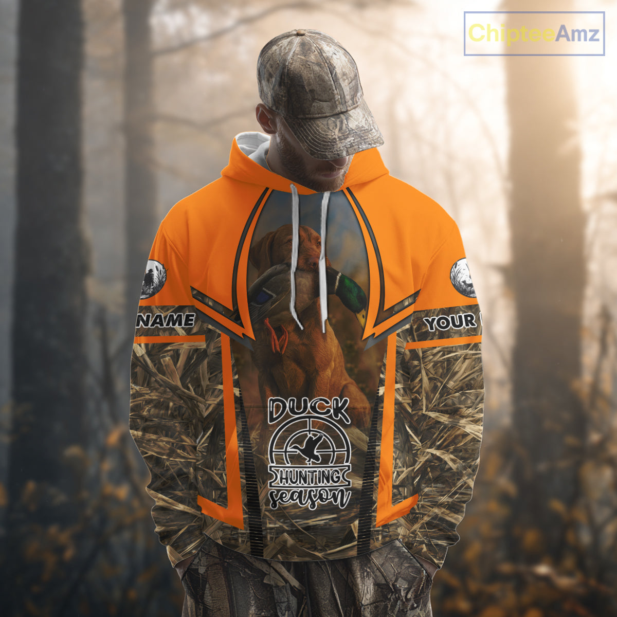Duck Hunting Shirt Personalized with Vizsla Dog Camo Orange Hunting Clothes For Men NHT151