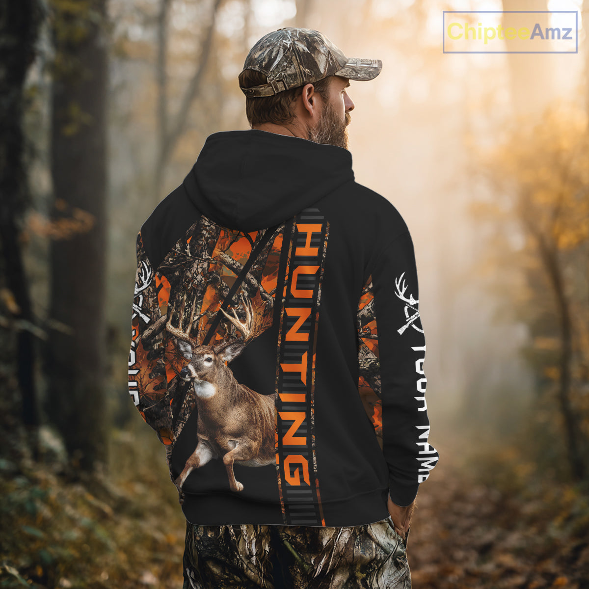 Personalized Whitetail Deer Hunting Orange Camo 3D All Over Printed Hoodie Hunting Shirt NBT316