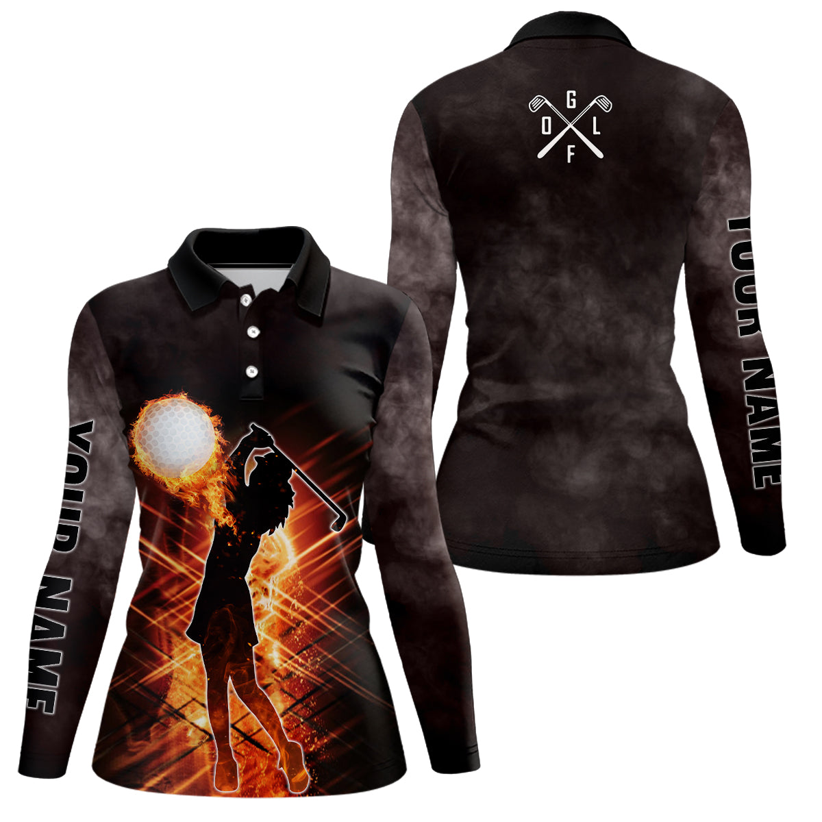 Womens golf polo shirt custom name flame golf ball light golf outfits women, personalized golf gifts NQS6796