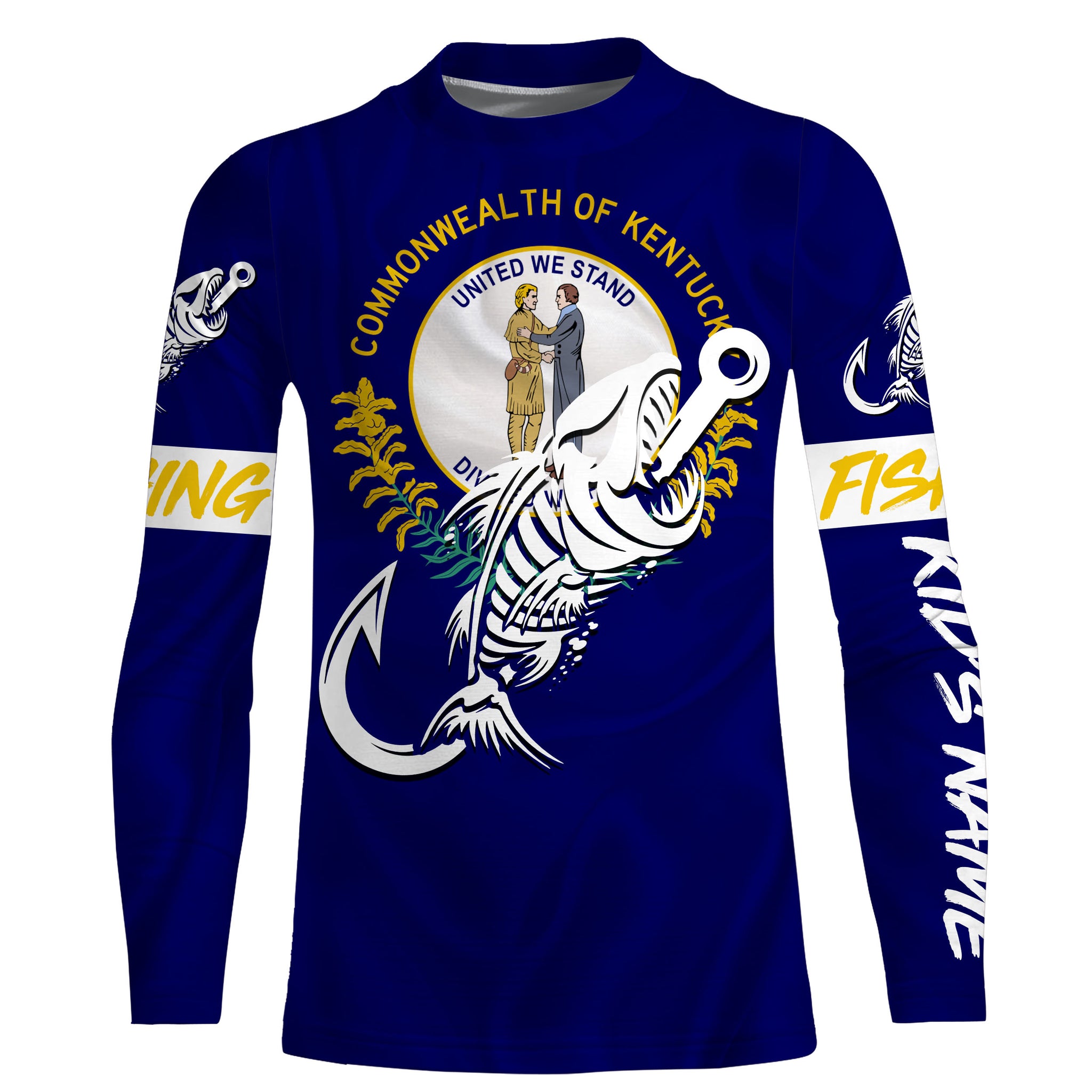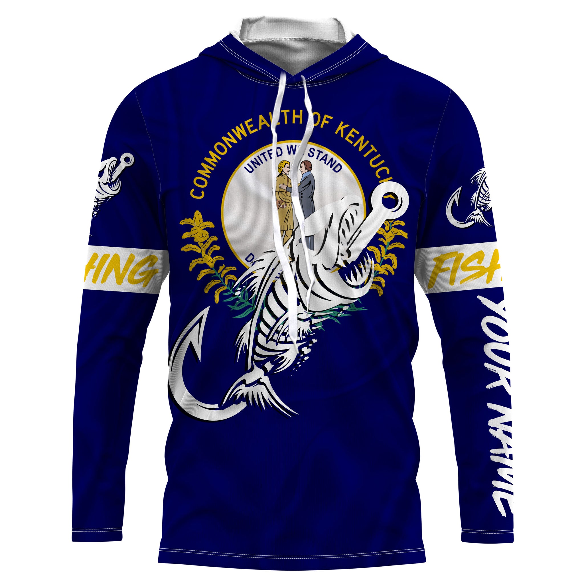 KY Kentucky Fishing Flag Fish hook skull Custom sun protection fishing shirts for men, women, kid NQS3394