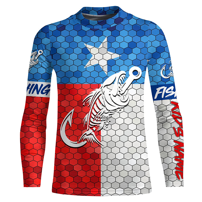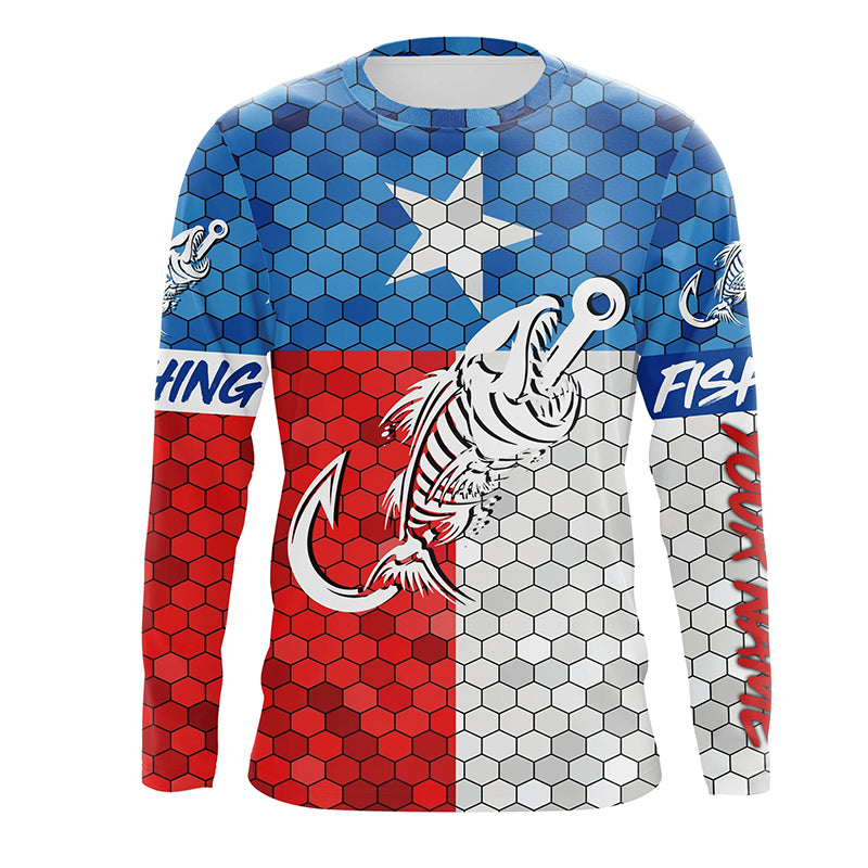Texas fishing Fish hook skull Custom Name sun protection 3D fishing shirts for men, women, kid NQS5170
