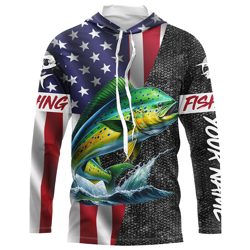 American Flag Mahi Mahi Fishing Custom long sleeve performance Fishing Shirt, Dorado Fishing jersey NQS7885