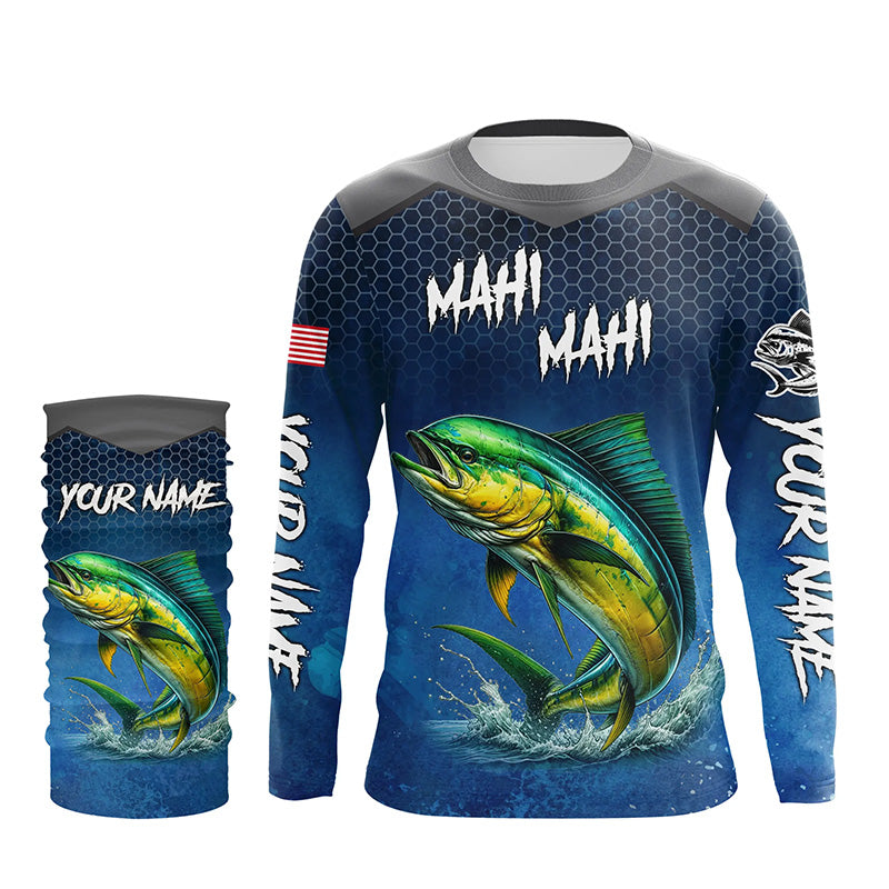Blue camo Mahi mahi fishing Custom performance long sleeve team Dorado fishing tournament shirts NQS7774