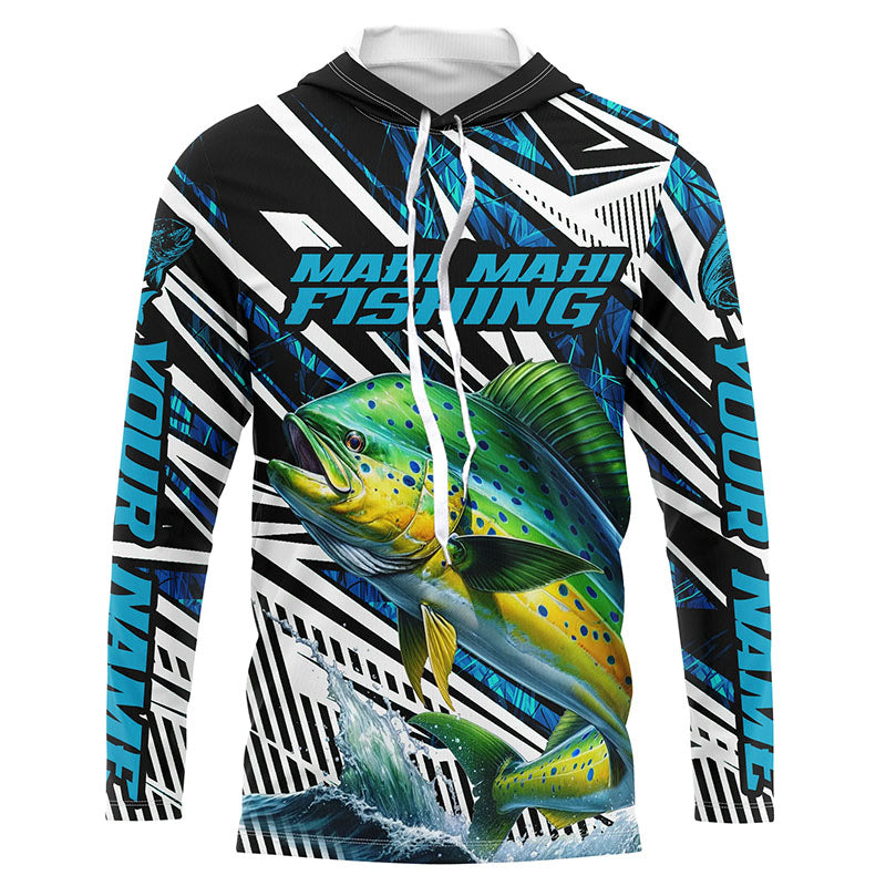 Custom Mahi Mahi Long Sleeve Tournament Fishing Shirts, Mahimahi Fishing Jerseys | Blue Camo IPHW6122