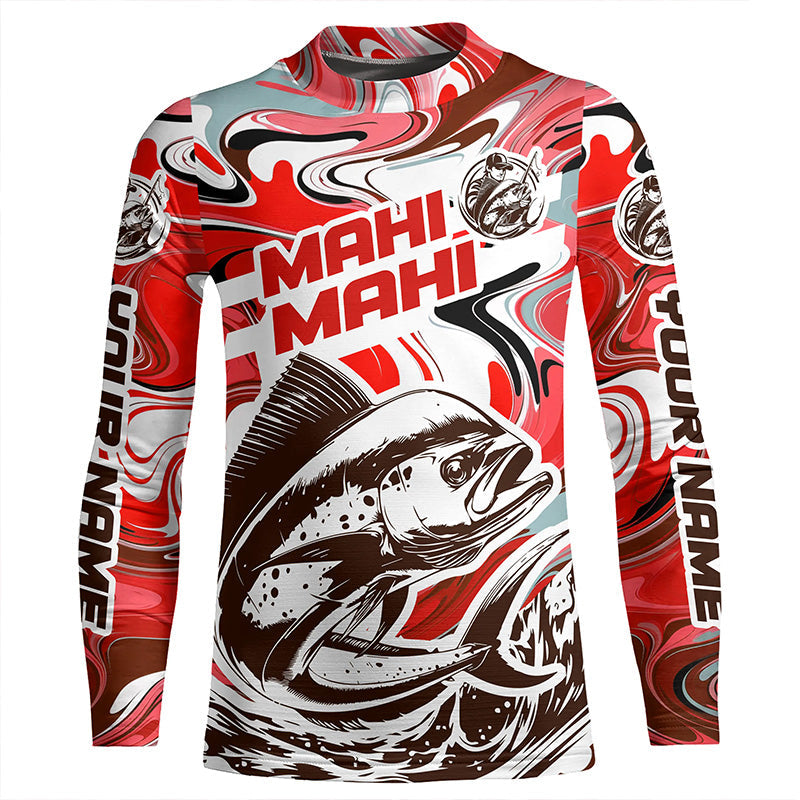 Custom Mahi Mahi Long Sleeve Uv Protection Fishing Shirts, Mahimahi Performance Shirts | Red Camo IPHW6153