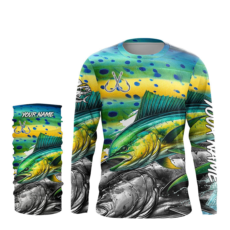 Mahi Mahi (Dorado) Fishing scales custom UV protection long sleeves fishing shirts for Men, Women NQS7882