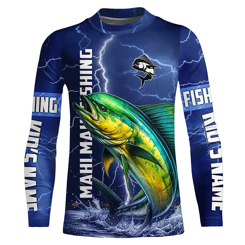 Mahi Mahi Fishing blue lightning jerseys custom performance Long Sleeve tournament fishing shirts NQS8150