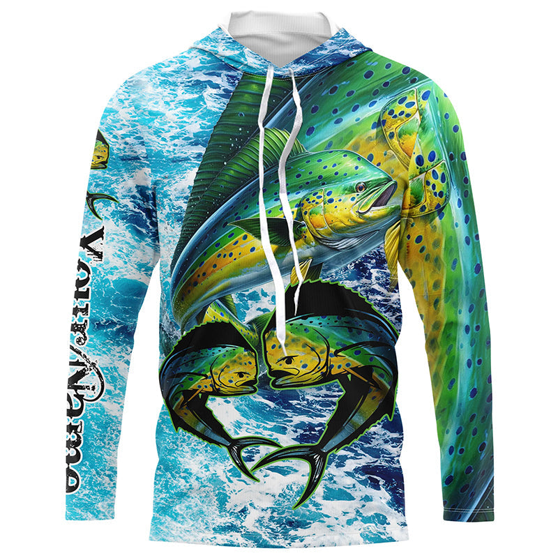 Mahi mahi fishing blue sea water camo Custom UV protection performance long sleeve fishing shirts NQS8123