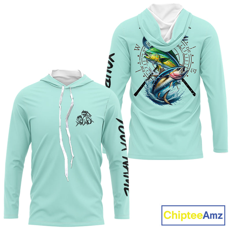 Personalized offshore Fishing jerseys, Mahi mahi, Wahoo, Tuna tournament fishing shirts | Light Green NQS11219