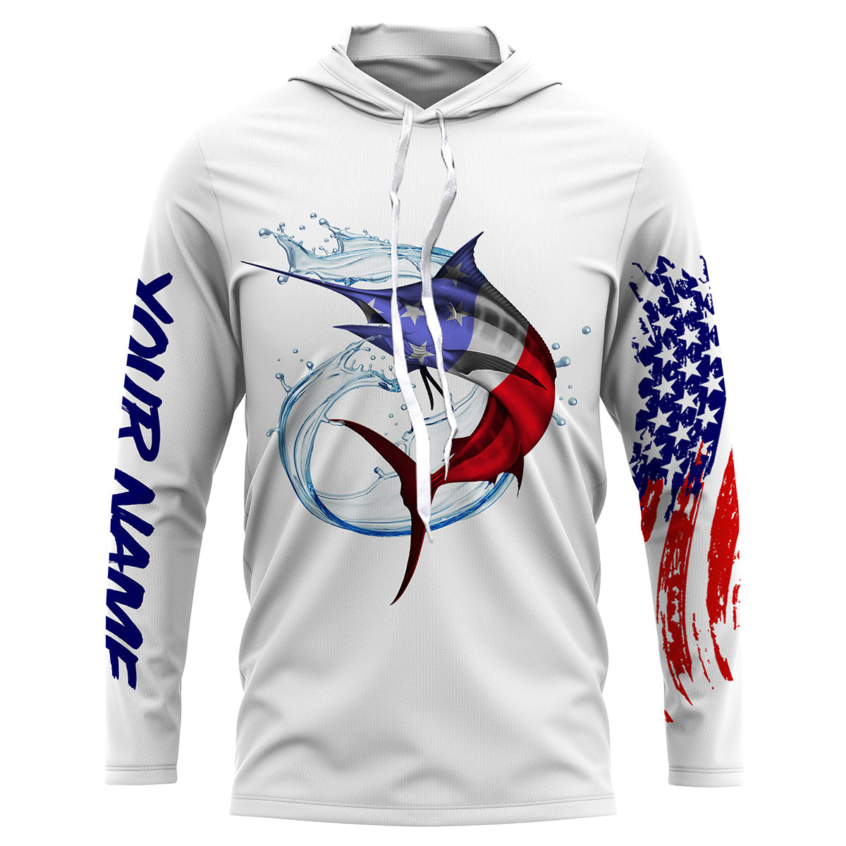 Marlin fishing American flag patriotic Custom Name UV protection UPF 30+ fishing jersey NQS3100