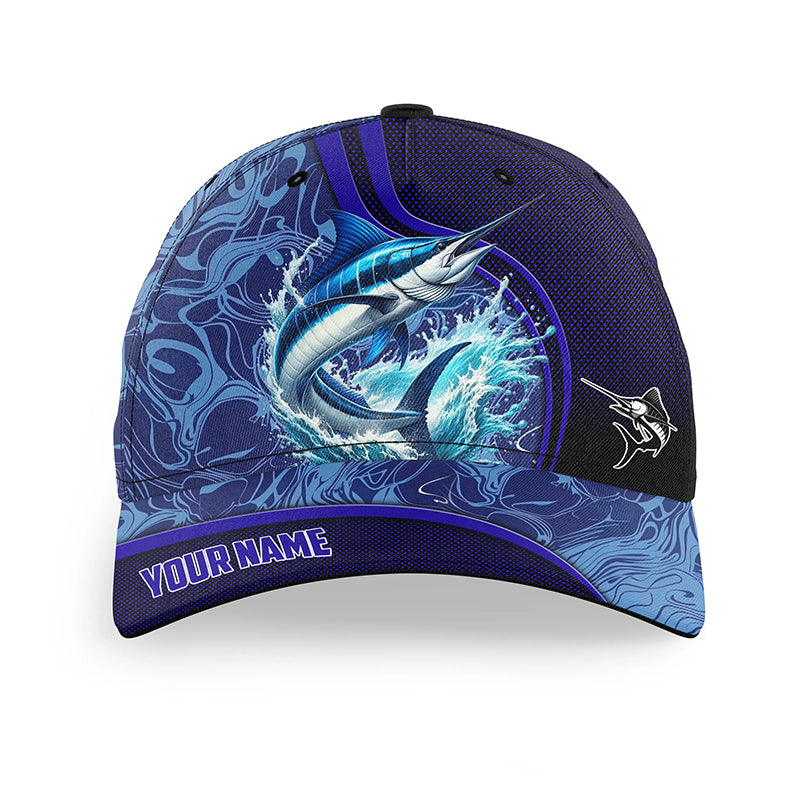 Marlin fishing blue camo Custom fishing hat Unisex Fishing Baseball saltwater Angler fishing hat cap NQS6980