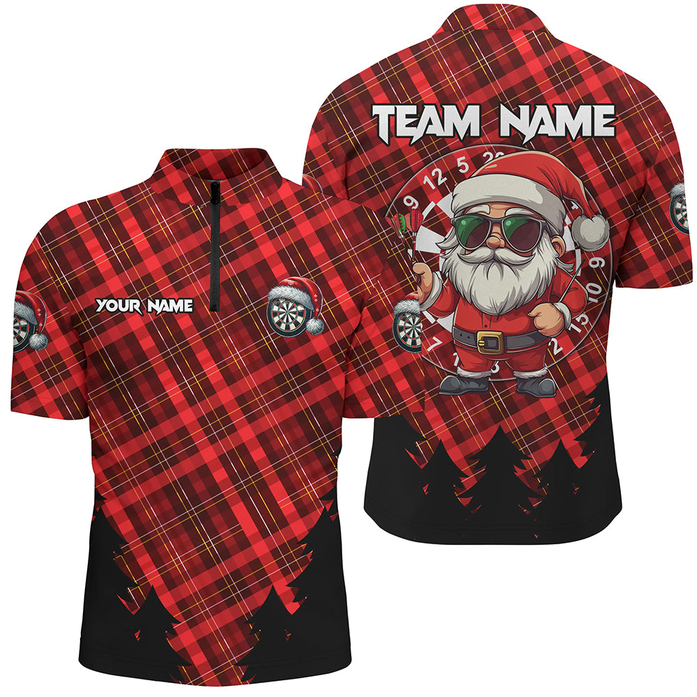 Funny Christmas Santa Custom Red Plaid Pattern Dart Shirts For Men, Christmas Darts Outfit Jerseys TDM2808