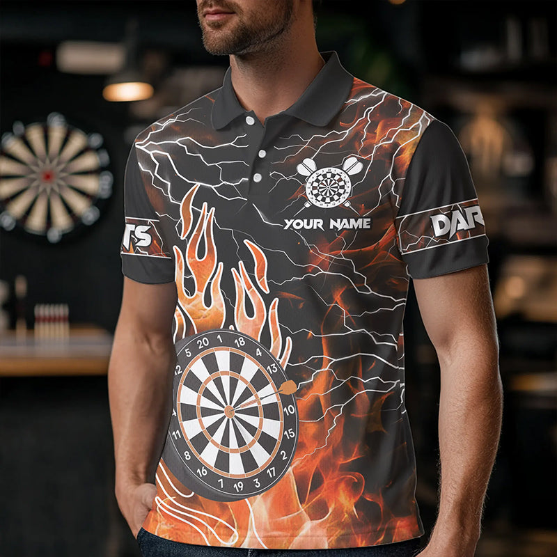 Orange Dart Board Fire Flame Custom Eagle Dart Shirts For Men, Thunder Lightning Dart Team Jerseys TDM3373