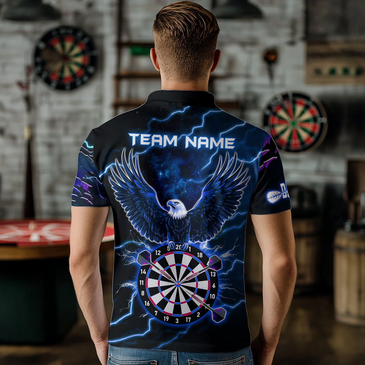 Personalized Thunder Lightning Eagle Blue Darts Shirt Polo & Quarter Zip For Men Dart Team Jersey TDM3580