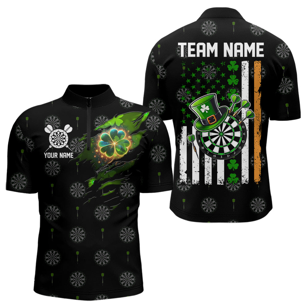 Irish American Flag Saint Patrick Day Dart Shirts For Men Custom Luckiest Shamrock Dart Jerseys TDM3606