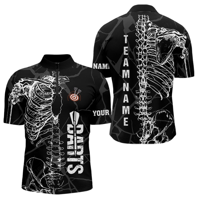 White Skeleton Custom Black Grunge Darts Polo & 1/4 Zip, Funny Dart Shirts For Men Dart Jerseys TDM3746