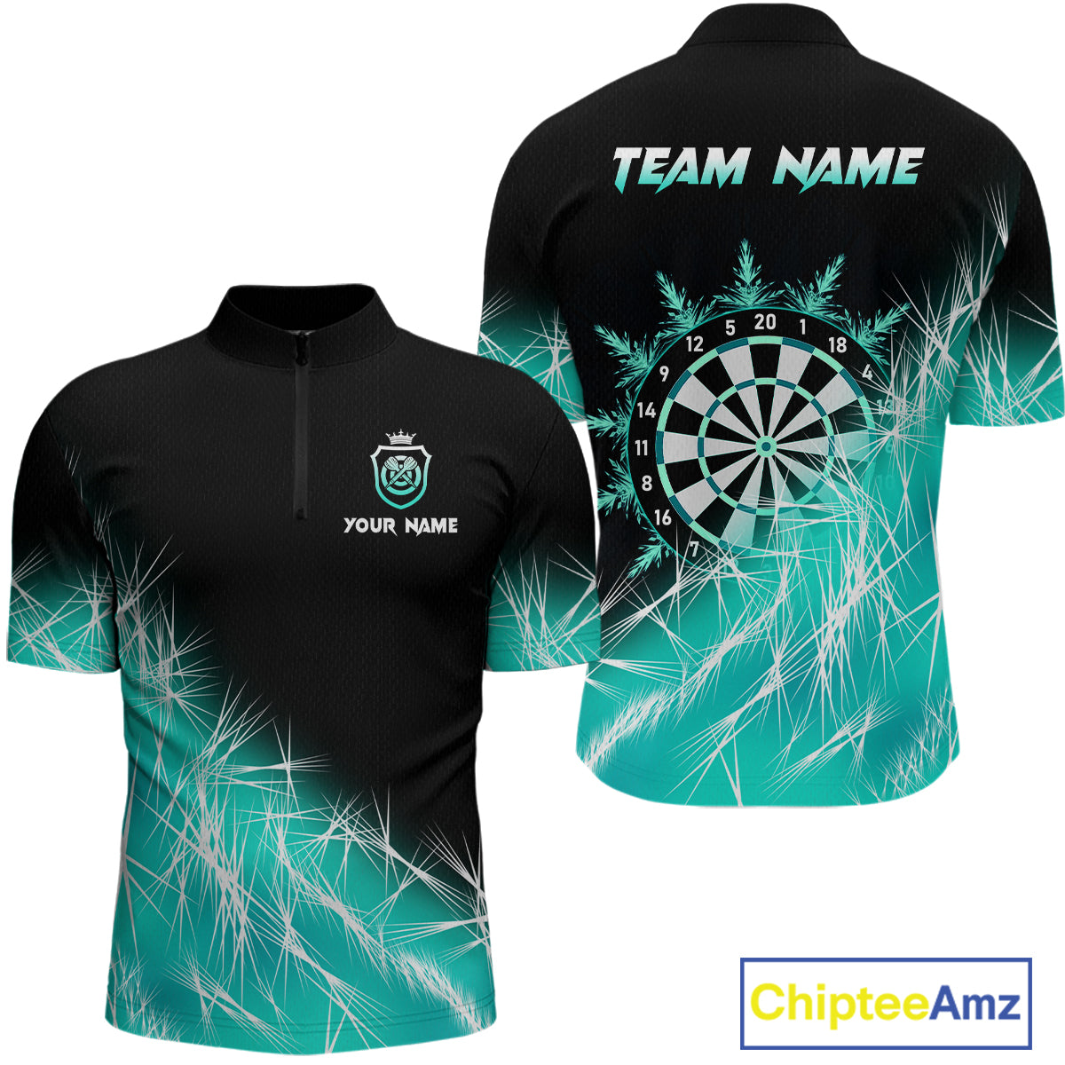 Turquoise Icy Lights Mens Darts Polo & Quarter Zip Custom Dart Shirt For Team Darts Jersey Outfit TDM4150