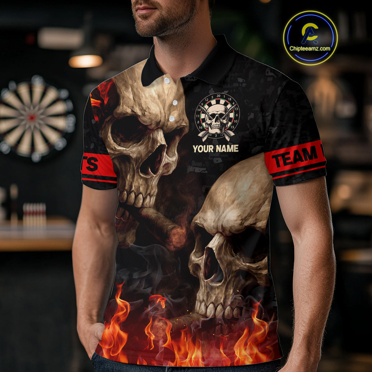 Let My Demon Throw Funny Dart Shirt For Men Custom Flame Skull Darts Team Jersey Polo & 1/4 Zip TDM4166