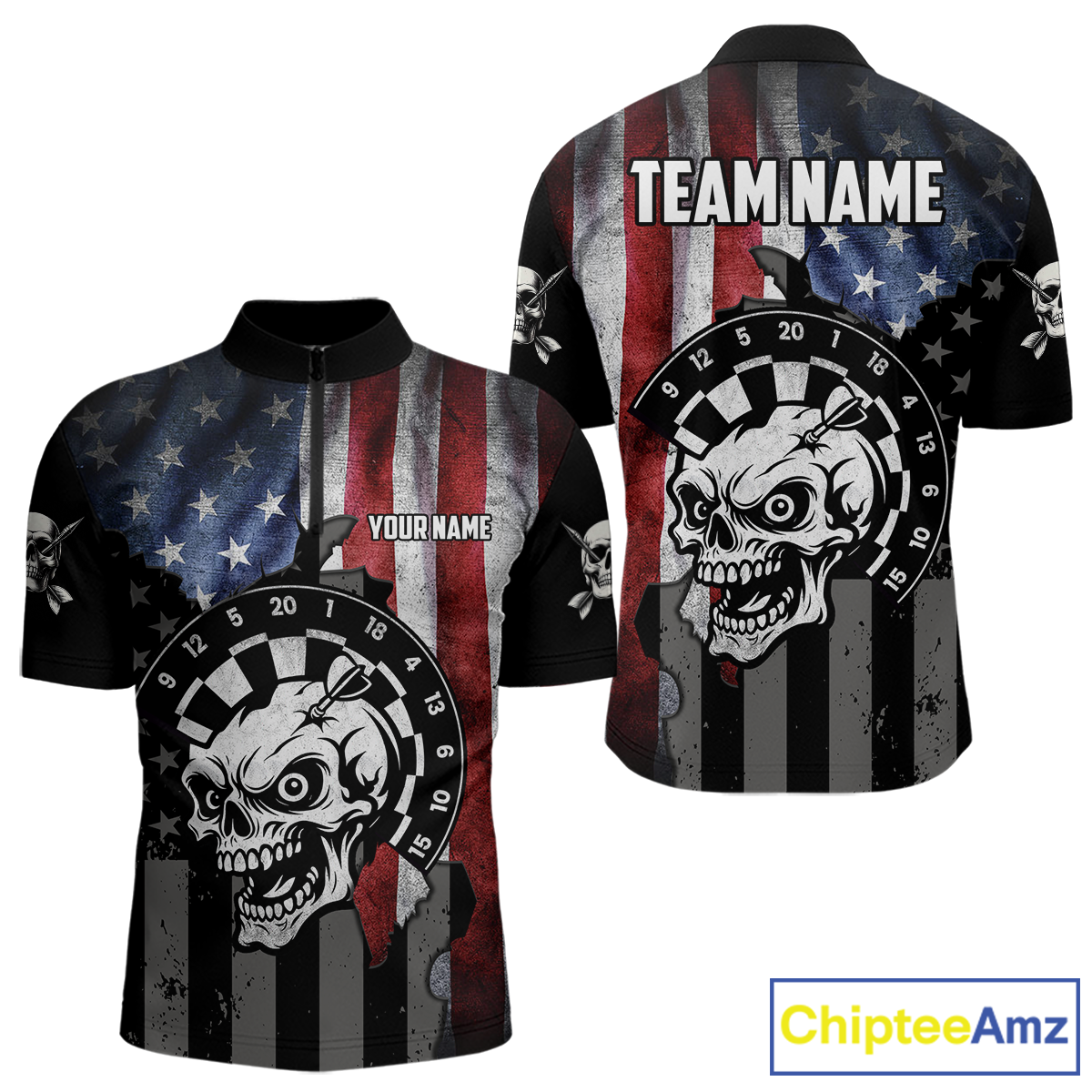 Personalized Funny Skull American Flag Dart Shirt For Men Custom Patriotic Darts Team Jerseys TDM4172