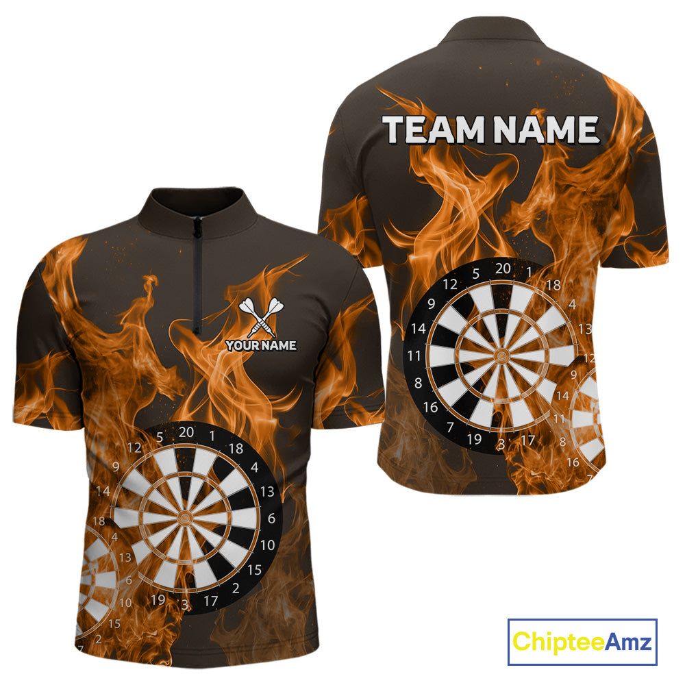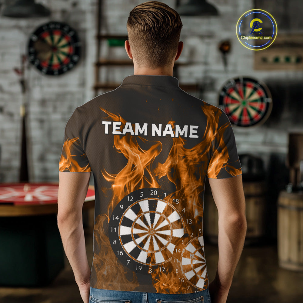 Orange Flaming Dartboard Darts Polo & Quarter Zip Custom Dart Shirts For Men Team Dart Jerseys TDM4229