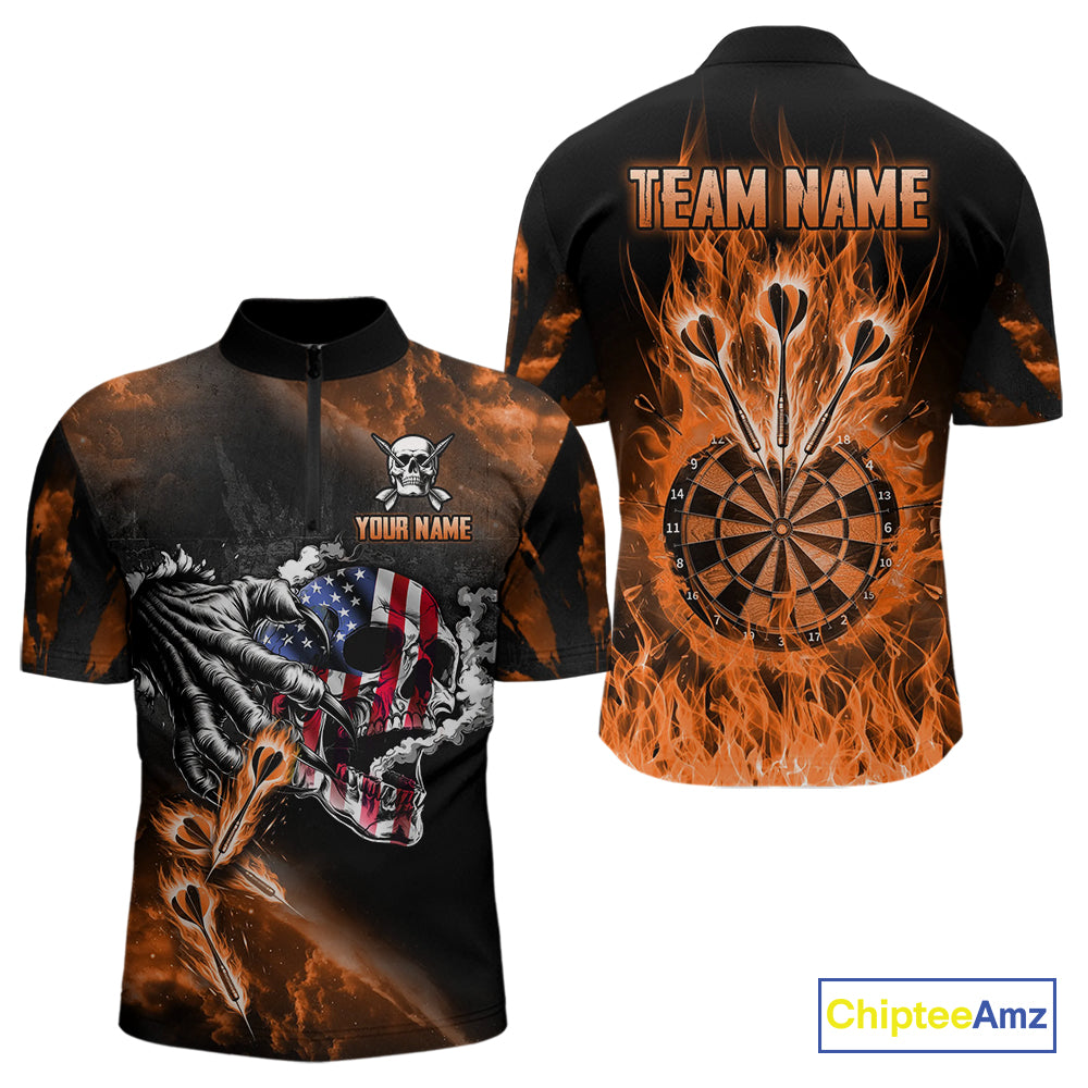 Fire Flame Darts Board American Flag Skull Dart Shirts For Men Custom Darts Team Jerseys |Orange TDM4267